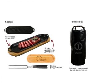- Чугунная сковородка для гриля 23 см с деревянной доской