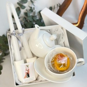- Чайный набор, состоящий из чайника, кружки и блюдца