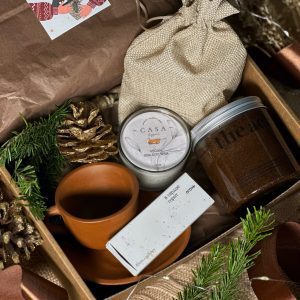 - Свеча с деревянным фитилем и ароматом «Капучино»;